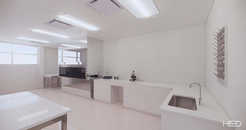 An open and light-filled space designed to meet future air and power requirements in the fast-growing biotech field.